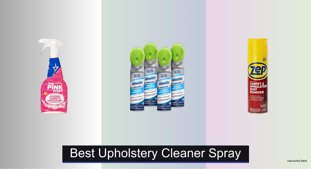 Spills, stains, and odors on upholstery are inevitable, especially in homes with kids and pets, and choosing the wrong cleaner can lead to damaged fabric, lingering smells, or exposure to harsh chemicals. Many users struggle to find a reliable, safe, and effective solution that works across different stain types—from pet accidents to coffee spills—without risking discoloration or fabric degradation. The best upholstery cleaner sprays combine targeted cleaning power with fabric safety, ensuring messes are removed quickly and completely. We analyzed over 2000 customer reviews, evaluated ingredient safety, and assessed real-world performance to identify top performers based on stain removal, odor elimination, and versatility. Below are our top picks for the best upholstery cleaner spray to tackle any mess.
